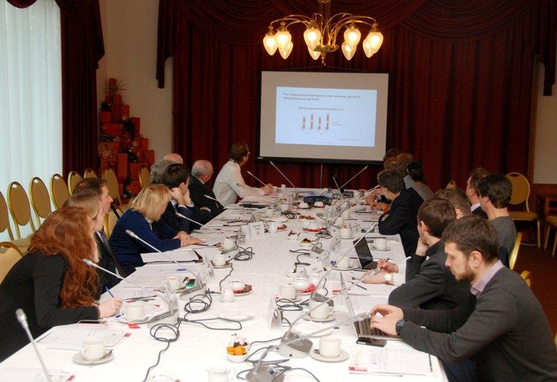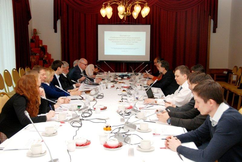 Круглый стол по теме “Проблемное поле и образ желаемого будущего финансовой среды ЕАЭС: новые инструменты и мировые торгово-экономические связи” прошел 21 декабря 2015 года в зале “Псков” гостиницы “Националь”.