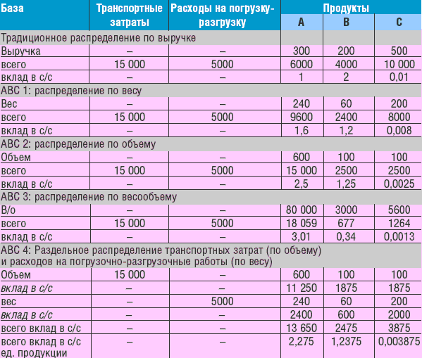 транспортных и погрузочно-разгрузочных работ в методе АВС разнообразием не отличаются.