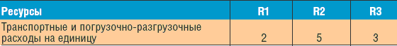 Пример. Допустим, известен результат первой стадии, т.е. разнесены транспортные и погрузочно-разгрузочные расходы на единицу каждого ресурса (см. табл. 10).