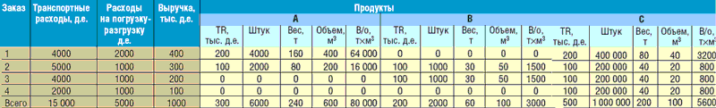 Таблица 8. Исходные данные для примера ТПР АВС-транспорт (сбыт)