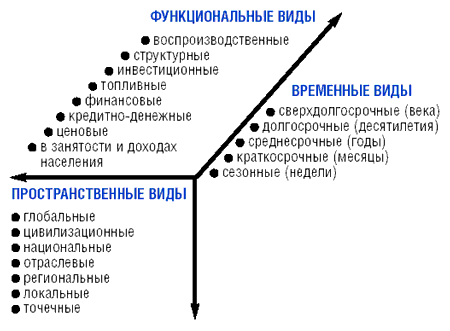- воспроизводственные и структурные – смена фаз воспроизводственных циклов и обусловленные этим сдвиги в структуре экономики, болезненная смена лидирующих отраслей и направлений;