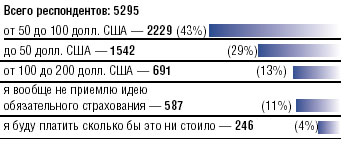 В феврале 2003 года Информационным агентством «РБК» и журналом «Экономические стратегии» на www.rbc.ru проводился опрос посетителей сайта. Респондентам было предложено ответить на вопрос: «Какой размер страхового взноса по обязательному страхованию ответственности владельцев автотранспортных средств для Вас приемлем?»