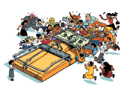 Глобальная финансовая система непрерывно генерирует кажущиеся необъятными возможности личного преуспевания в финансовых играх. Доказательство тому – контингент миллионеров и миллиардеров, стремительно растущий во всем мире, а особенно в "переходных странах". Появление их требует надлежащей среды, в которой стоит только руку протянуть – и молниеносно получишь потребительский или ипотечный кредит, доступ на фондовые удачи и т.п. Пьянящий азарт вседоступности легкого, почти игрового обогащения. О жертвах пишут меньше, а рассказами о счастливцах полна вся деловая пресса. В душещипательных историях о всевозможных пирамидах часто даже не уловишь сразу их подспудный урок – то ли возмущение (восхищение) мошенниками-организаторами, то ли злорадство в отношении "лузеров". Сочувствие, даже у судов, встречаешь реже. Бдительность и компетентность, однако, растут. Но и формы недобросовестного, манипулятивного отношения к клиенту также совершенствуются. Так и висят все на одном крючке – призраке легкой добычи.