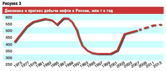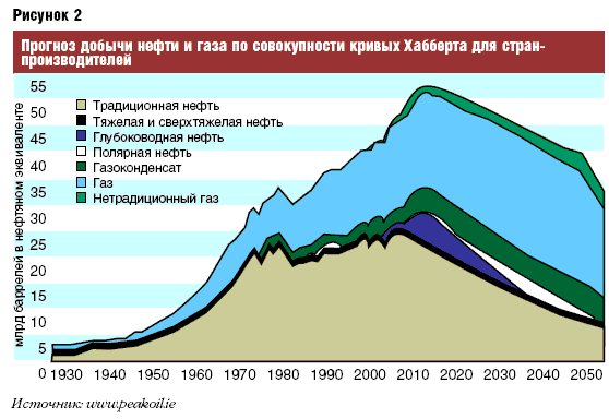 На рис. 2 и 3 показан прогноз мировой и российской добычи нефти, жизненно важной для нашей экономики, по классической модели Хабберта. Представьте на миг, что мы хотя бы на месяц остались без нефтепродуктов. Пик нефтедобычи, судя по всему, пройден. Д.И. Менделеев писал, что сжигать нефть так же неразумно, как топить ассигнациями. Но ХХ в. изменил немногое – без большой натяжки можно сказать, что на Земле построена нефтяная цивилизация. И тут открываются две неприятные для России возможности. Как показывает история науки и техники (а точнее, теория техноценозов, активно развиваемая американскими исследователями Л.Г. Бадалян и В.Ф. Криворотовым), когда наступает время жесткого дефицита какого-нибудь ресурса, то ищут и находят новый, а цена и значение предыдущего стремительно падают. Хрестоматийный пример – кризис древесного угля, необходимого для выплавки стали и пароходов, в Англии был связан с тем, что ради него извели немыслимое количество лесов.