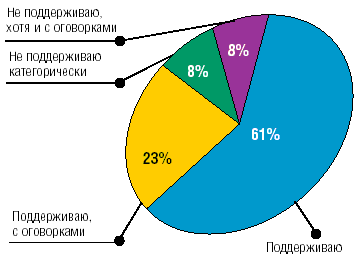 61% опрошенных поддерживают глобальную интеграцию почти без всяких оговорок. Еще около четверти одобряют ее на определенных условиях, которые в каждом отдельном случае формулируются в соответствии со спецификой деятельности управленца. Против глобализации выступает приблизительно один из шести опрошенных. Отметим, что в эту категорию входят и те, кто, по собственному определению, не совсем понимает, что стоит за широким использованием этого термина и каковы могут быть последствия описываемых им процессов. Однако не только эта, последняя категория, но и многие менеджеры, поддерживающие глобализацию, затрудняются дать ей однозначное определение. Некоторые считают, что тенденция к интеграции есть ни что иное, как воплощение в жизнь древней мечты о соединении мира в единое целое, обладающей огромным потенциалом развития и преодоления тех проблем, с которыми сталкиваются отдельные страны.